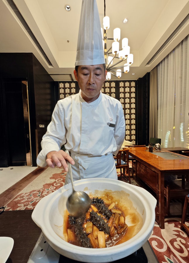 現(xiàn)場烹制蔥燒海參