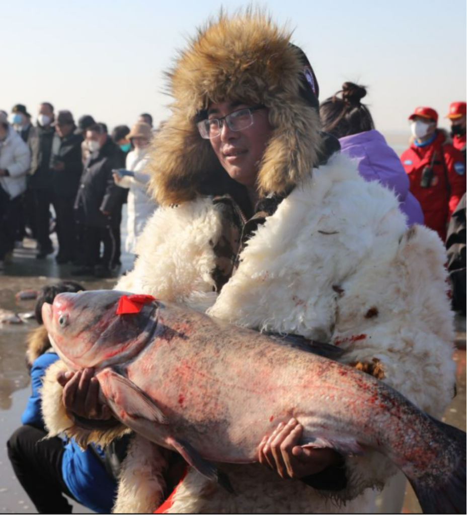 據(jù)了解,哈素海第一屆冰雪旅游節(jié),頭魚(yú)現(xiàn)場(chǎng)拍賣(mài)出6.8萬(wàn)元的價(jià)格,2024年頭魚(yú)拍賣(mài)成交價(jià)為40.8萬(wàn)元。