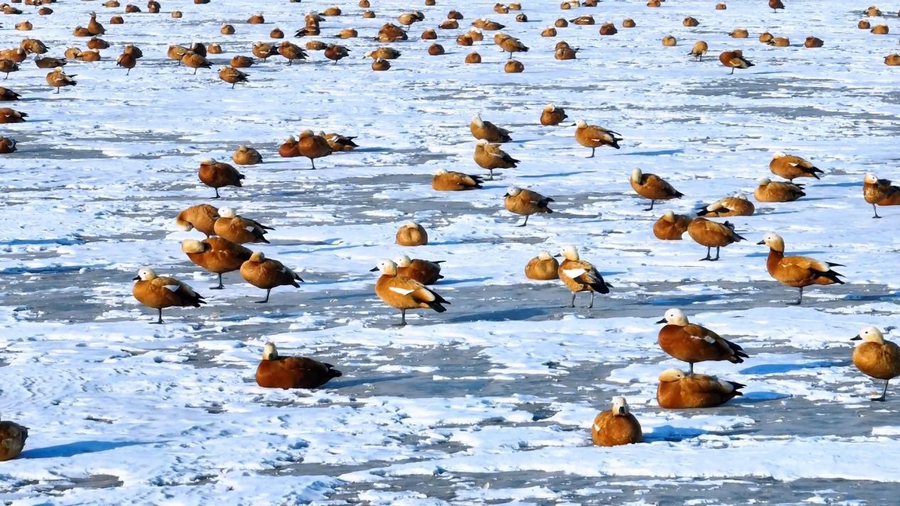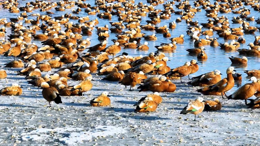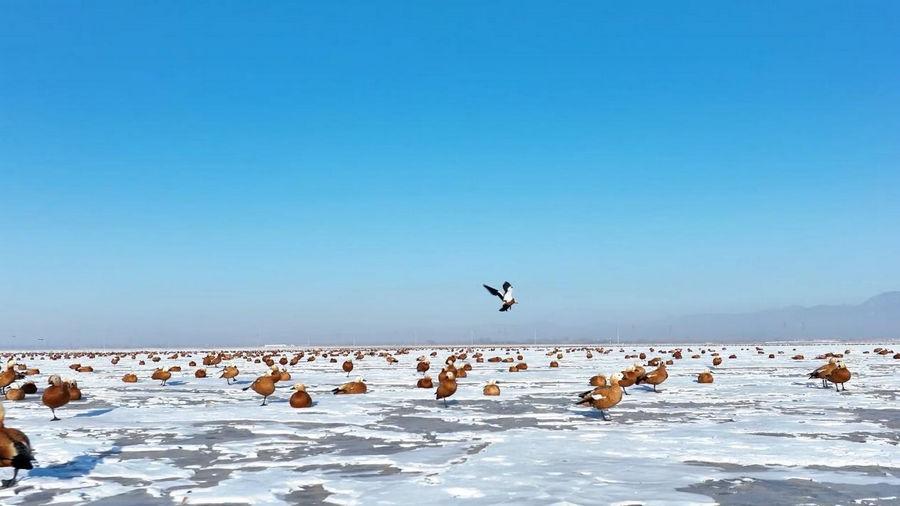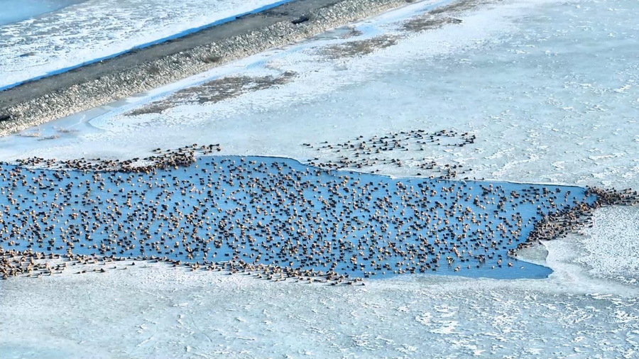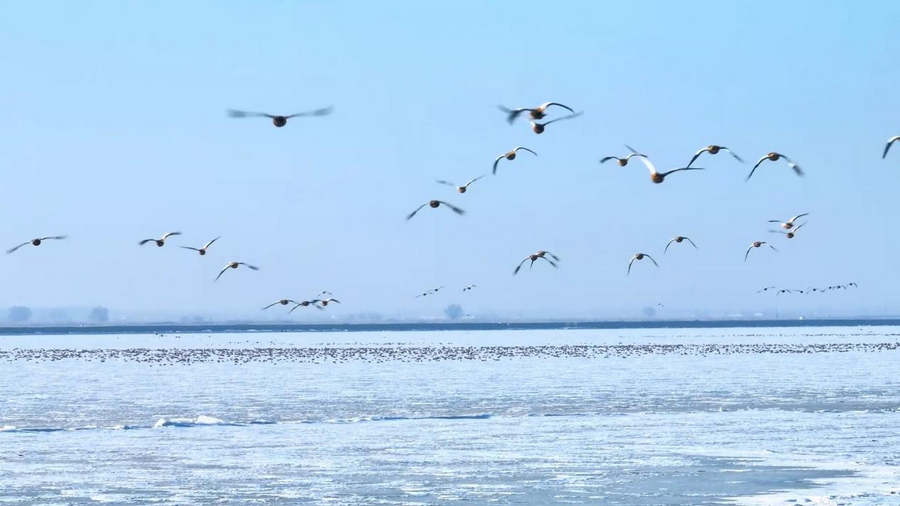 隨著天氣轉(zhuǎn)暖,冰雪消融,土默特左旗的海流水庫迎來了大批北歸的候鳥。它們或在水面上嬉戲覓食,或在空中自由翱翔,為初春封凍的水庫增添了一抹靈動的色彩。