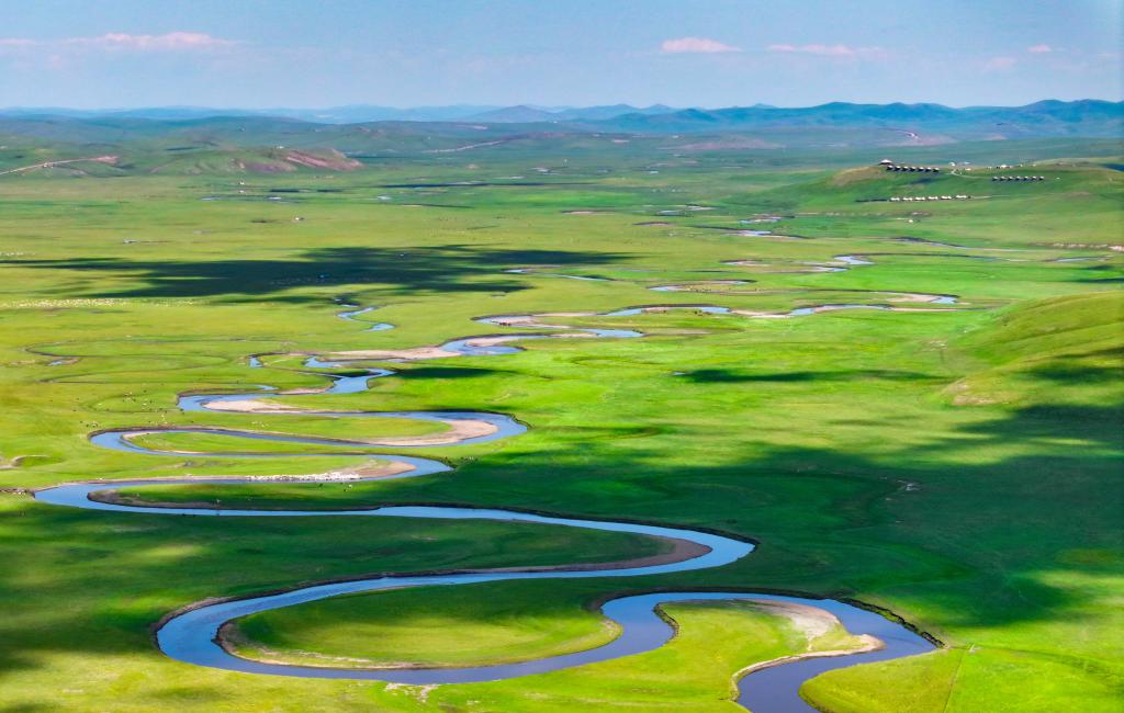 以“曲”聞名天下的莫爾格勒河發(fā)源于內(nèi)蒙古自治區(qū)呼倫貝爾市陳巴爾虎旗境內(nèi),全長(zhǎng)319公里。盛夏時(shí)節(jié),迂回輾轉(zhuǎn)的河道、低垂的云影、成群的牛羊共同構(gòu)成一幅宛如油畫(huà)般的草原風(fēng)情畫(huà)卷。