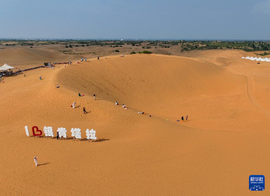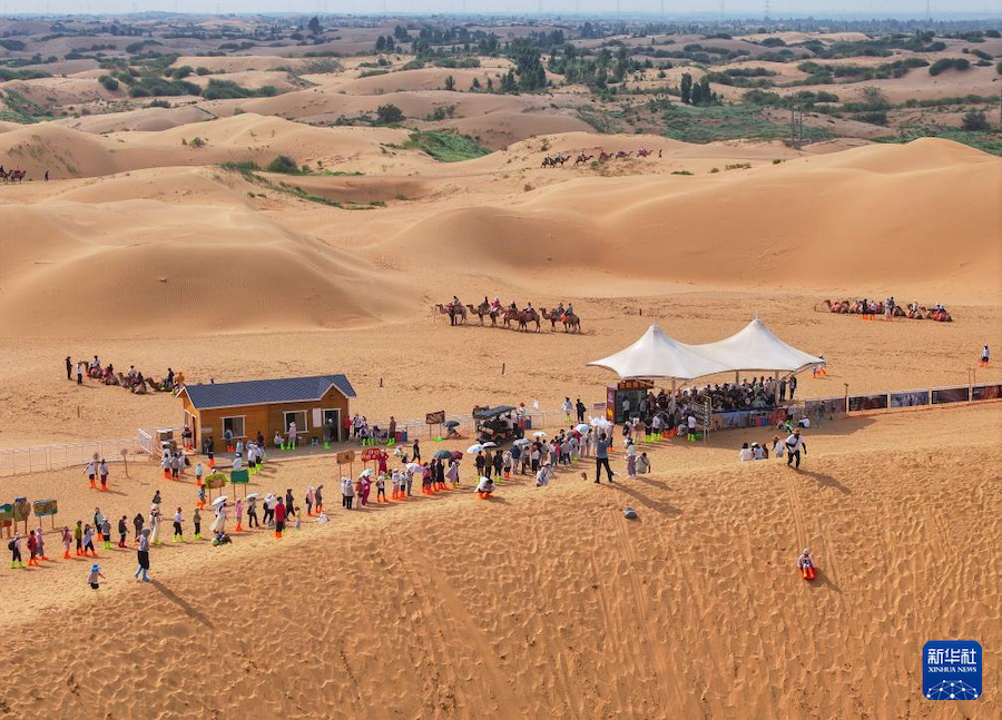 盛夏時(shí)節(jié),內(nèi)蒙古鄂爾多斯市庫(kù)布其沙漠迎來(lái)旅游旺季。在達(dá)拉特旗銀肯塔拉和響沙灣景區(qū),來(lái)自各地的游客絡(luò)繹不絕。