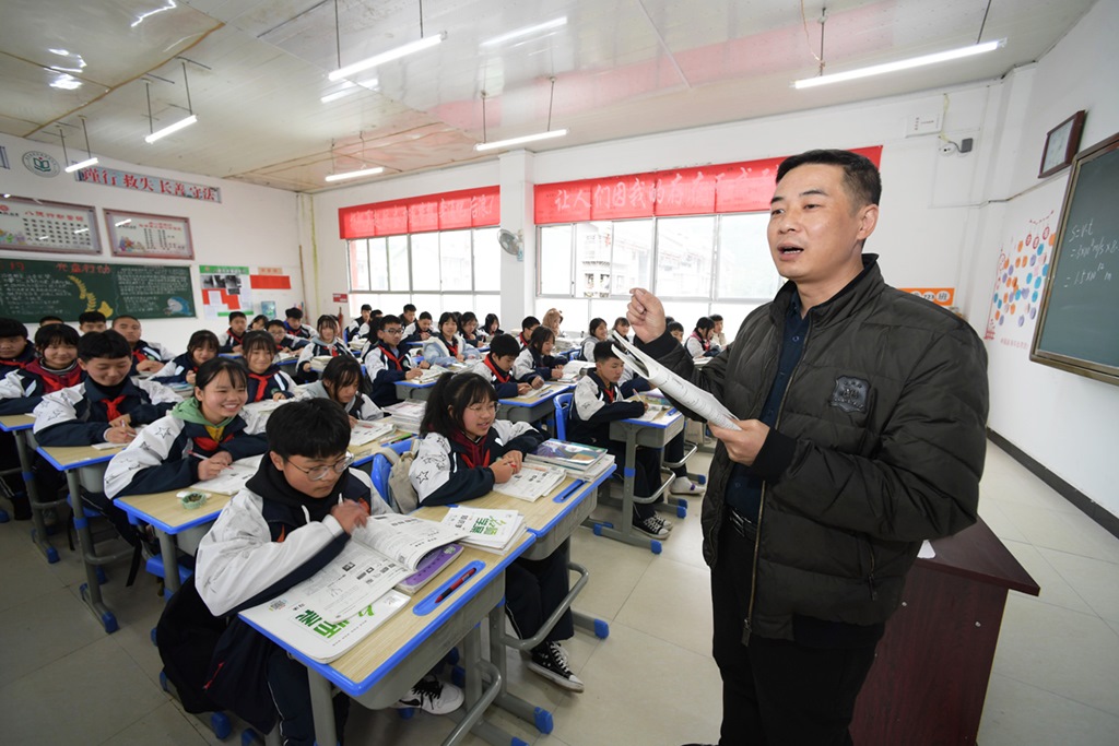 在貴州省黔東南苗族侗族自治州劍河縣第三中學(xué),來自浙江省杭州市淳安縣的對口幫扶教師蔡新民在給學(xué)生上物理課(2020年11月26日攝)。