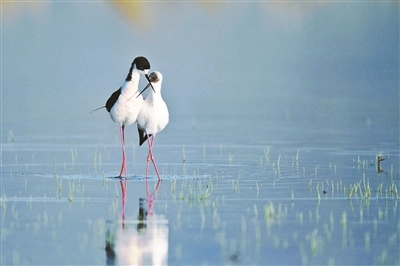 觀鳥者在密云區(qū)拍攝到的黑翅長腳鷸,系北京市2級(jí)保護(hù)鳥類