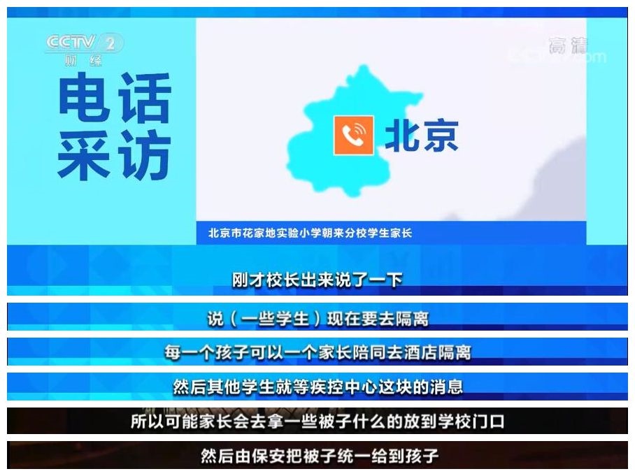 北京市花家地實驗小學(xué)朝來分校 學(xué)生家長:現(xiàn)在應(yīng)該是做完核酸檢測,在等結(jié)果了。老師在群里面會通知我們,孩子可能明天開始線上上課。