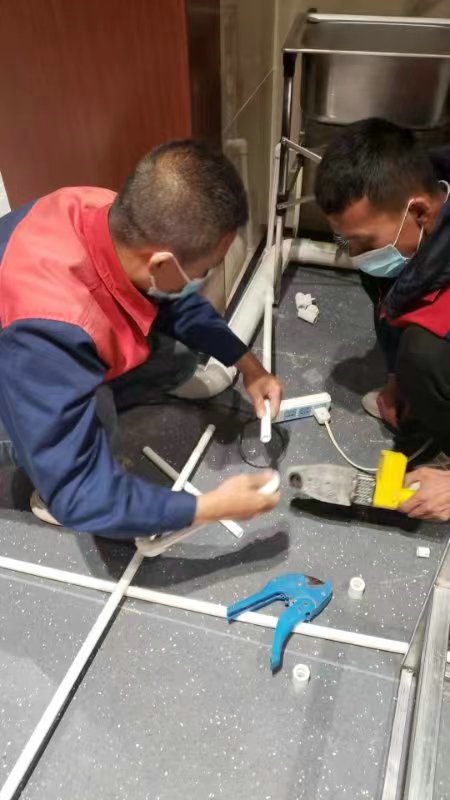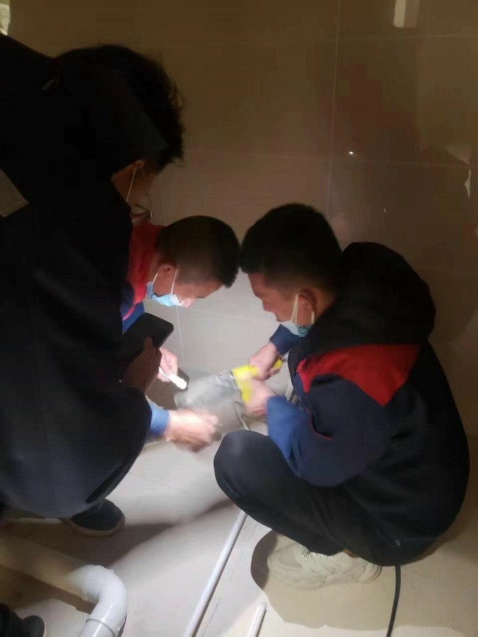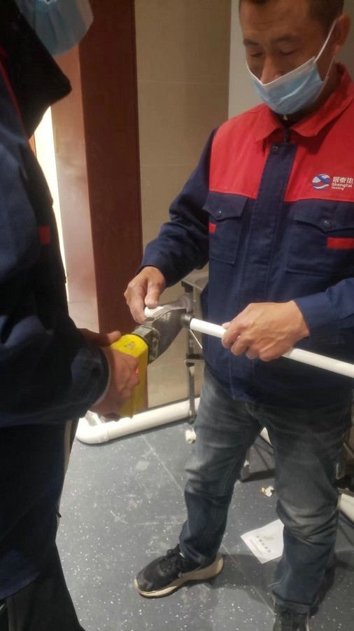 深夜,氣溫突降,冷風(fēng)毫不留情地灌入現(xiàn)場(chǎng)施工人員的衣服里,但無一人松勁、無一人退縮。由于材料分布范圍較大,只見身穿紅、藍(lán)工作服的他們徒步穿梭于各樓層之間,一刻不停地搬運(yùn)管件及材料、安裝設(shè)備。因疫情管控不能到現(xiàn)場(chǎng)的同事則堅(jiān)持利用通訊工具提供遠(yuǎn)程技術(shù)支持,為前線答疑解惑。方艙醫(yī)院建設(shè)屬于應(yīng)急工程,時(shí)間緊、任務(wù)重,加之現(xiàn)場(chǎng)材料缺乏,施工人員只能就地取材,爭(zhēng)分奪秒的同時(shí),“突擊隊(duì)”表現(xiàn)出了高度的專業(yè)性,迅速、細(xì)致、高效地進(jìn)行管道鋪設(shè)和熱水器安裝……凌晨4點(diǎn),在現(xiàn)場(chǎng)全體施工人員的共同努力下,方艙醫(yī)院水暖安裝工作順利完成。