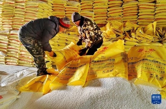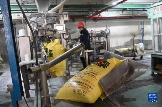 2月16日,北大荒集團五大連池農(nóng)場科技服務(wù)中心工人在混拌肥料,為春耕做準(zhǔn)備。