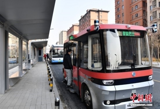 2月22日,智能網(wǎng)聯(lián)巴士901線測試車輛準(zhǔn)備發(fā)車。雄安新區(qū)的智能網(wǎng)聯(lián)巴士近期正在進(jìn)行投入運(yùn)營前的道路測試,該巴士配備了超高感度攝像頭、超聲波雷達(dá)、激光雷達(dá)、毫米波雷達(dá)等感知設(shè)備,組成了車輛的“眼睛”。車輛可自主識別紅綠燈、道路提示牌和車道標(biāo)線等,做出跟車、超車、停車等動作。中新社記者 韓冰 攝