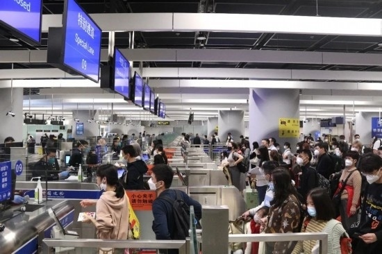 圖為西九龍站口岸旅客通關(guān)現(xiàn)場(chǎng)。