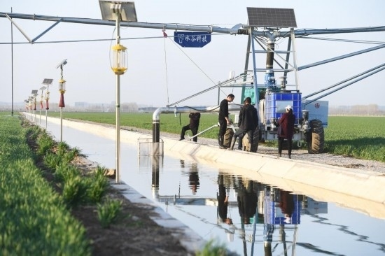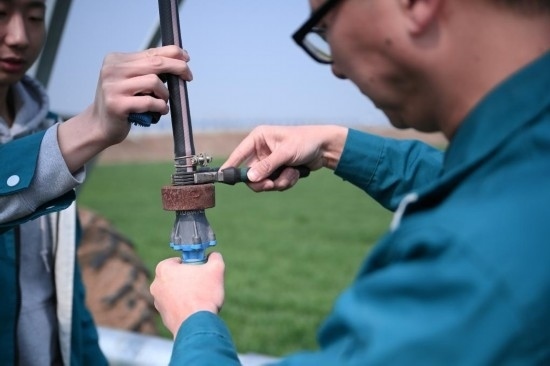 “這個噴頭換過了,你登記好?!痹诤幽鲜●v馬店市西平縣高標準農田示范區(qū)的麥田里,河南水投柏農產(chǎn)業(yè)發(fā)展有限公司運營管理部負責人劉亞輝一邊擰好噴灌機的新噴頭,一邊叮囑一起巡檢的王英凡。