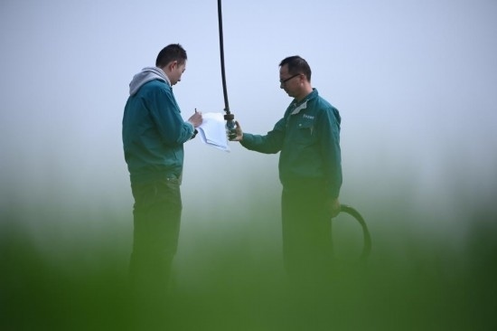 “這個噴頭換過了,你登記好。”在河南省駐馬店市西平縣高標準農田示范區(qū)的麥田里,河南水投柏農產(chǎn)業(yè)發(fā)展有限公司運營管理部負責人劉亞輝一邊擰好噴灌機的新噴頭,一邊叮囑一起巡檢的王英凡。