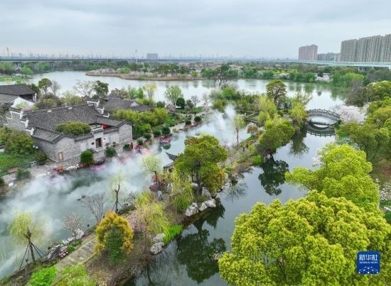 近日,浙江省寧波市植物園內(nèi)的櫻花、海棠、郁金香等競(jìng)相綻放,與垂柳、古建筑等相互映襯,構(gòu)成一幅幅和美的春景。