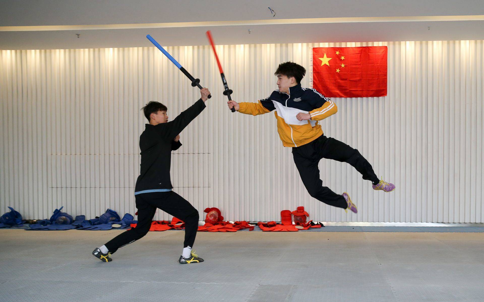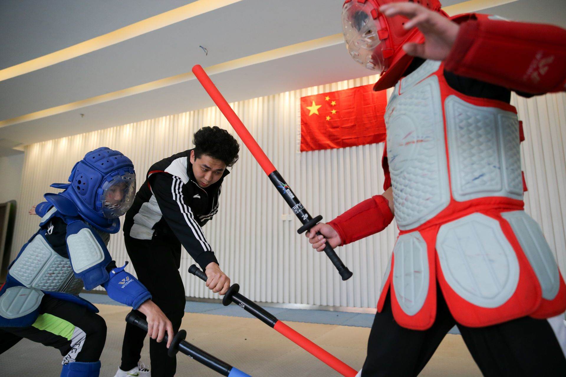 隊(duì)員手持一柄海綿包裹的短劍,時(shí)而閃躲騰挪,時(shí)而沖刺進(jìn)攻,動(dòng)作行云流水。一招一式間盡顯力量和速度之美,相互對(duì)抗擊打時(shí)發(fā)出“啪啪”的聲響更是令人熱血沸騰……如果說(shuō)哪一項(xiàng)運(yùn)動(dòng)能夠滿(mǎn)足人們對(duì)俠客的終極幻想,非武術(shù)兵道莫屬。3月21日,為備戰(zhàn)全國(guó)武術(shù)兵道錦標(biāo)賽,內(nèi)蒙古唯一一支武術(shù)兵道隊(duì)在呼和浩特市體育運(yùn)動(dòng)學(xué)校展開(kāi)訓(xùn)練。