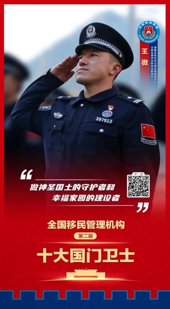 國家移民管理機(jī)構(gòu)十大國門衛(wèi)士每3年評選表彰一次,獲評人員是全國移民管理警察隊伍中政治立場堅定、能力素質(zhì)過硬、工作實績卓著、紀(jì)律作風(fēng)優(yōu)良、模范作用顯著的先進(jìn)典型,是新時代移民管理警察的杰出代表。他們忠誠履職、無私奉獻(xiàn),在捍衛(wèi)國家政治安全、維護(hù)國門邊境穩(wěn)定、促進(jìn)經(jīng)濟(jì)社會發(fā)展過程中作出了突出貢獻(xiàn),生動反映了國家移民管理體制改革的豐碩成果,展示了移民管理警察良好精神風(fēng)貌,展現(xiàn)了移民管理機(jī)構(gòu)新形象、新作為。