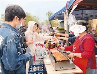市民在北京市海淀區(qū)上莊水鄉(xiāng)大集上購(gòu)買食品。蘇明辰攝