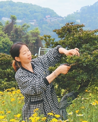 “家家擺盆景,人人學(xué)手藝?!比缃瘢p龍村花木盆景產(chǎn)業(yè)種植規(guī)模擴大到了2000余畝,年產(chǎn)值達2000萬元。在此基礎(chǔ)上,當(dāng)?shù)剡M一步發(fā)展鄉(xiāng)村旅游產(chǎn)業(yè),特色民宿如雨后春筍,雙龍村“山城花冠”的名聲也越叫越響,不僅讓村民在家門口就能就業(yè)、吸引不少在城區(qū)務(wù)工的村民返鄉(xiāng)創(chuàng)業(yè),還改善提升了當(dāng)?shù)氐幕A(chǔ)設(shè)施建設(shè)水平、林地覆蓋面積,實現(xiàn)了生產(chǎn)、生活、生態(tài)的多贏,走出一條以綠色產(chǎn)業(yè)助力鄉(xiāng)村振興的發(fā)展新路。