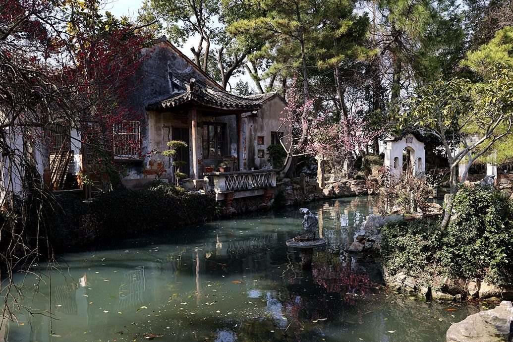 初見影園,第一眼并不算驚艷。斑駁的紅磚外墻、90年代常見的用以防盜的玻璃碎片扎進墻頭邊沿,似乎就是鄉(xiāng)村里最普通的宅院,很難和蘇州園林扯上關(guān)系。不過,一推開門,影園就開始不動聲色地“顯山露水”。