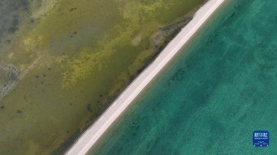 這是4月15日拍攝的青海湖一角(無人機(jī)照片)。