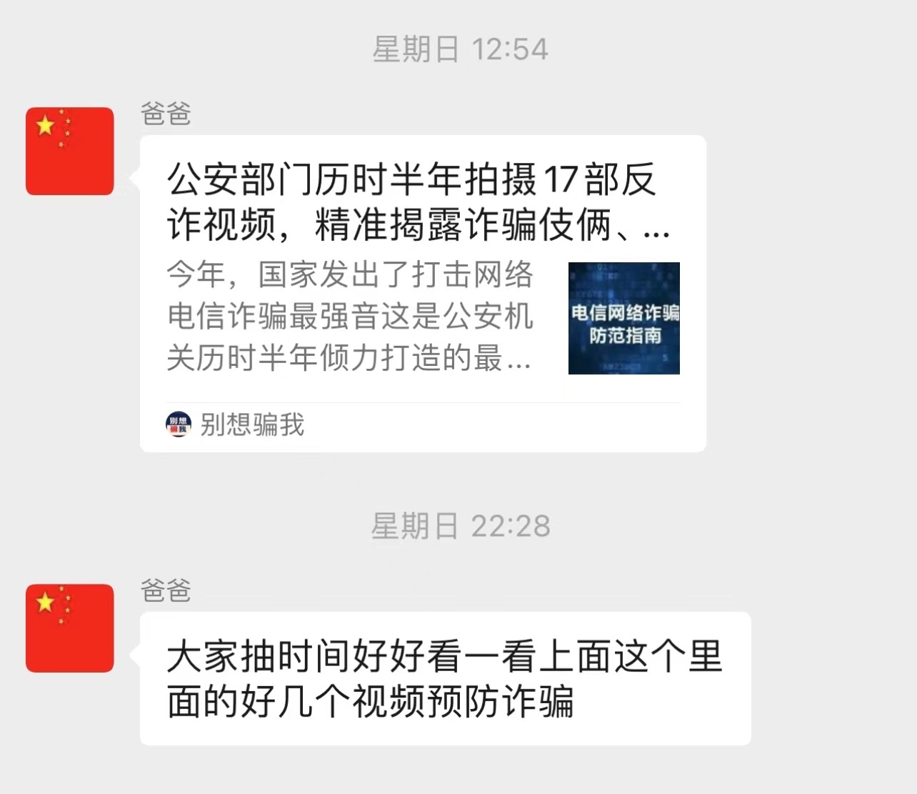 張爸爸表示:“以前我老婆經(jīng)常會(huì)發(fā)一些防詐騙的小視頻推薦給大家,但是大概在2019年后,群里一下子冷清起來(lái),很少有人發(fā)消息,我們分享有趣的事、好看的內(nèi)容,除了我女兒就很少有人回復(fù)了”。
