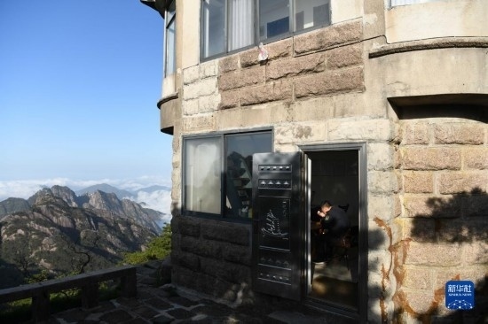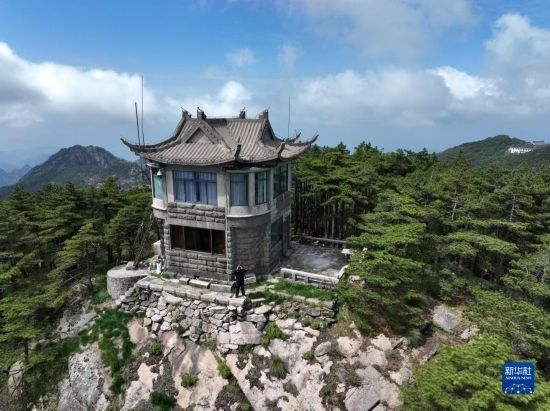 這是5月8日拍攝的黃山風(fēng)景區(qū)平天矼瞭望哨(無(wú)人機(jī)照片)。