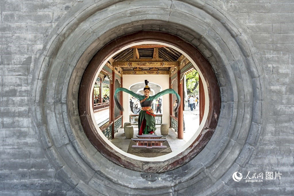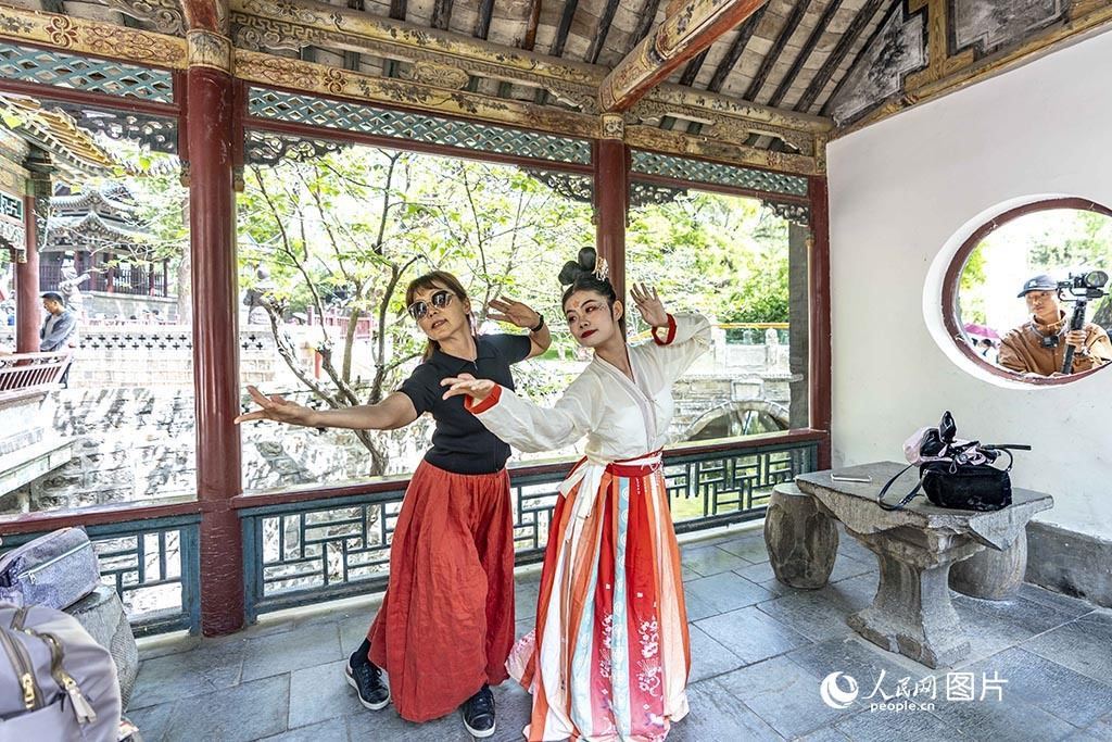 5月18日,在山西太原晉祠博物館內(nèi)隨處可見的漢服游園表演。人民網(wǎng) 盧鵬宇攝