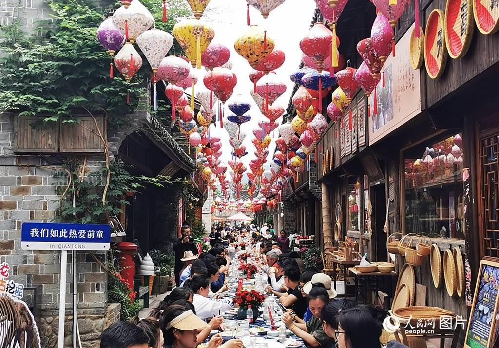 5月19日,寧波市寧??h前童古鎮(zhèn)豆腐節(jié)長桌宴,吸引八方來客。人民網(wǎng) 章勇濤攝