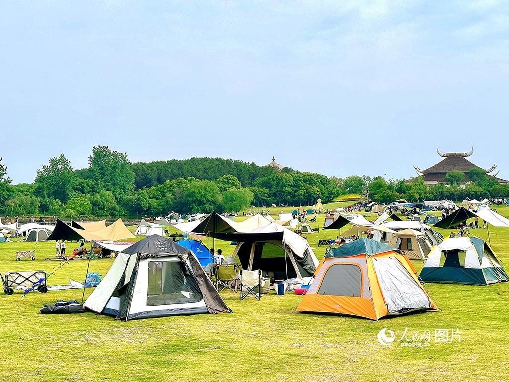 5月13日,眾多游客在位于武漢市黃陂區(qū)王家河鎮(zhèn)的木蘭草原景區(qū)露營。人民網(wǎng)記者 張沛攝