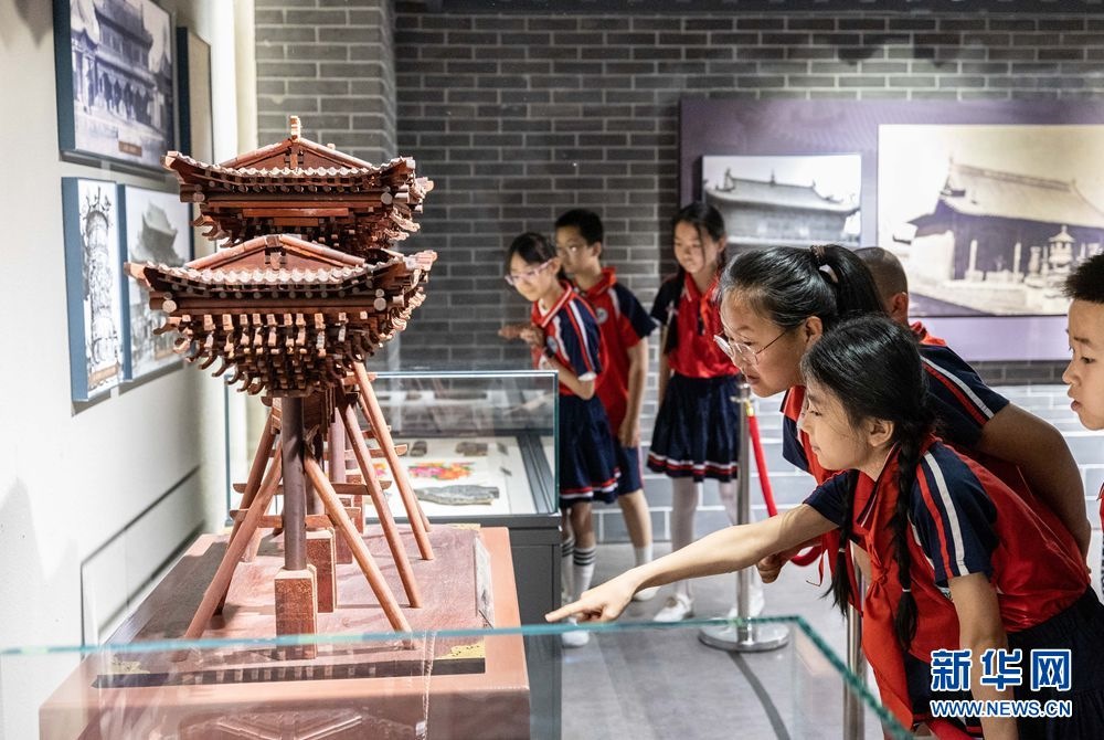5月17日,呼和浩特市玉泉區(qū)南茶坊小學學生在歸化城展示館參觀牌樓微縮模型。新華網(wǎng)發(fā)(丁根厚攝)