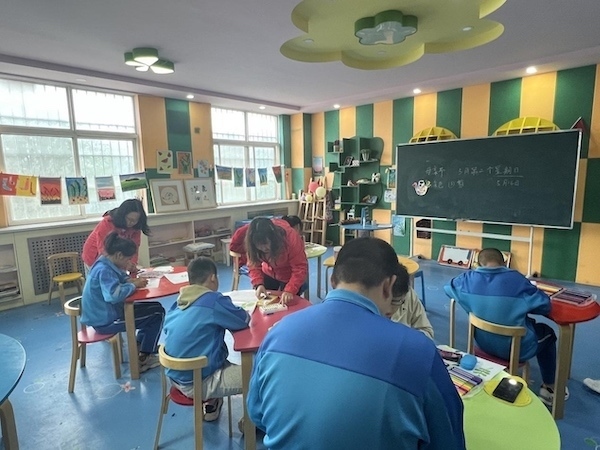 作為一所九年義務(wù)教育段公辦特殊教育學(xué)校,除國(guó)家課程外,學(xué)校重點(diǎn)開設(shè)了如情景醫(yī)院、情景銀行、情景超市、感統(tǒng)課程、冰壺課程、手鼓課程、語(yǔ)言訓(xùn)練課程等特色課,致力于提高殘疾兒童的自理能力,為殘疾兒童走向社會(huì)打好基礎(chǔ)。此外,學(xué)校積極探索醫(yī)教結(jié)合機(jī)制,協(xié)調(diào)相關(guān)醫(yī)院提供免費(fèi)診療活動(dòng),并堅(jiān)持送教上門,幫助特殊兒童在家也能學(xué)知識(shí)、促康復(fù)、練技能。