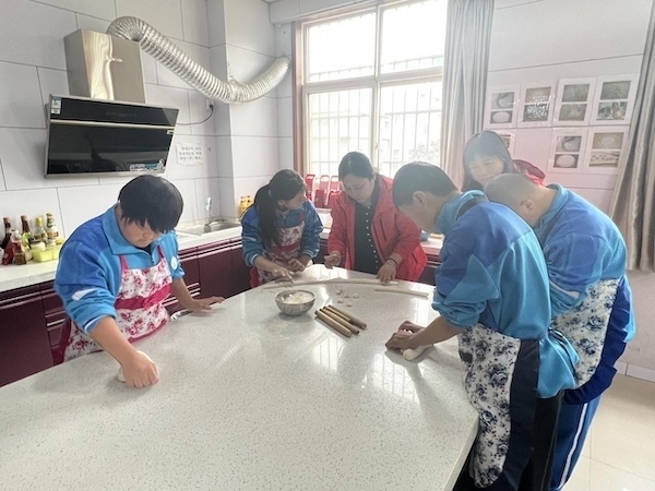 走進(jìn)陜西省渭南市特殊教育學(xué)校,手鼓聲、搟面聲、冰壺與地面摩擦聲此起彼伏;由教師扮演的“超市收銀員”正為“購(gòu)物”的學(xué)生結(jié)賬;“自助取款機(jī)”前,幾位小朋友正排著隊(duì)學(xué)習(xí)如何存取現(xiàn)金;醫(yī)院“問診臺(tái)”、“掛號(hào)處”等模擬窗口應(yīng)有盡有……在這里,飽含愛心、耐心、責(zé)任心的教學(xué)態(tài)度和幫助特殊兒童自理、自立、自強(qiáng)的教育初衷滋養(yǎng)著每一名學(xué)生平安成長(zhǎng)。