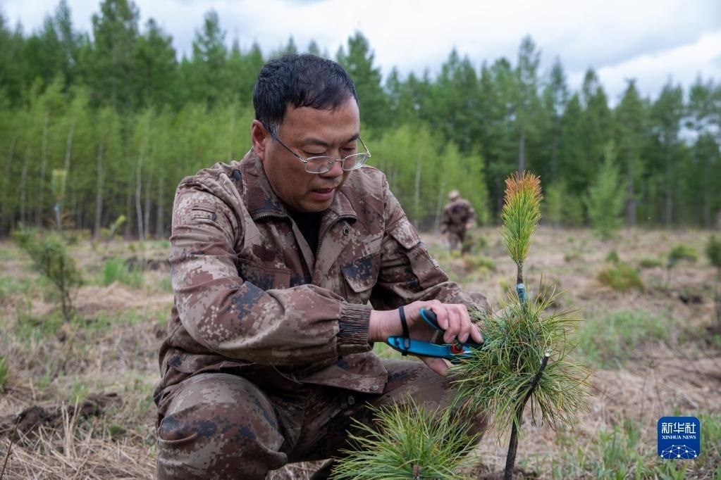 這是5月24日拍攝的伊春森工集團(tuán)上甘嶺林業(yè)局公司溪水林場(chǎng)內(nèi)栽種的紅松樹苗。