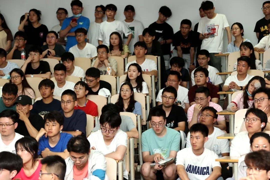 活動(dòng)中,盡管教室內(nèi)溫度很高,可沒有一名學(xué)生中途離開。一名站在過道處聽講的學(xué)生差點(diǎn)暈倒,工作人員把他扶到空調(diào)處休息了一會(huì),感覺好點(diǎn)后,他又繼續(xù)站在人群中聽講。