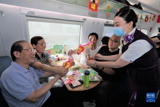 端午節(jié)前夕,鐵路上海客運(yùn)段在列車上邀請旅客參加端午民俗活動,迎接端午佳節(jié)。