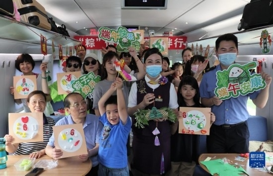 端午節(jié)前夕,鐵路上??瓦\(yùn)段在列車上邀請旅客參加端午民俗活動,迎接端午佳節(jié)。