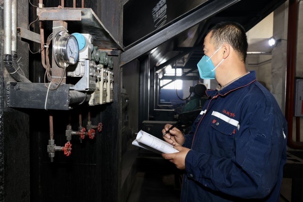 9月14日,工人在車(chē)間內(nèi)查看供熱參數(shù)。(漠河市委宣傳部供圖)