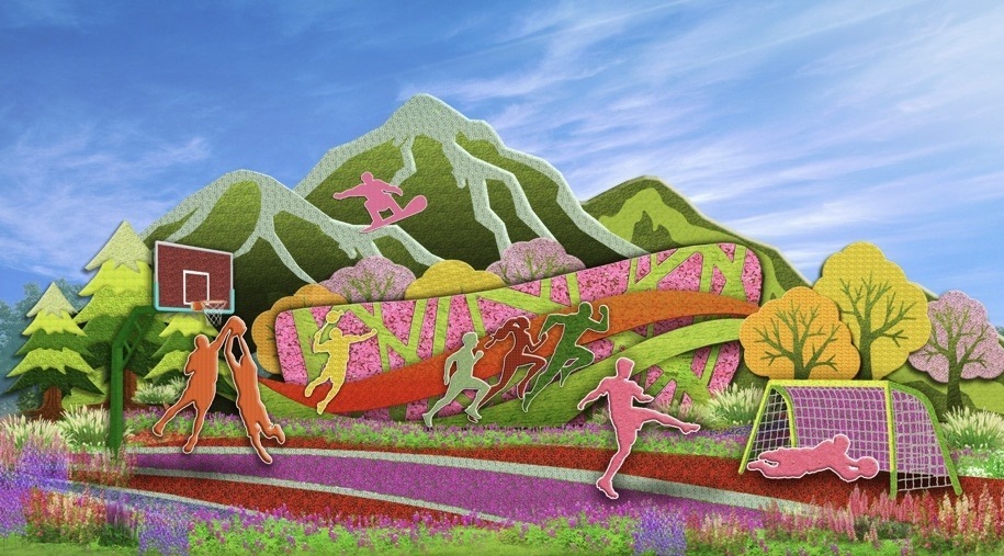 6,西單東北角的“全民健身”花壇頂高8.5米,以豐富多彩的全民健身為題材,配以籃球、羽毛球、跑步、滑雪等運(yùn)動(dòng)場景,寓意全民健身共享美好生活。