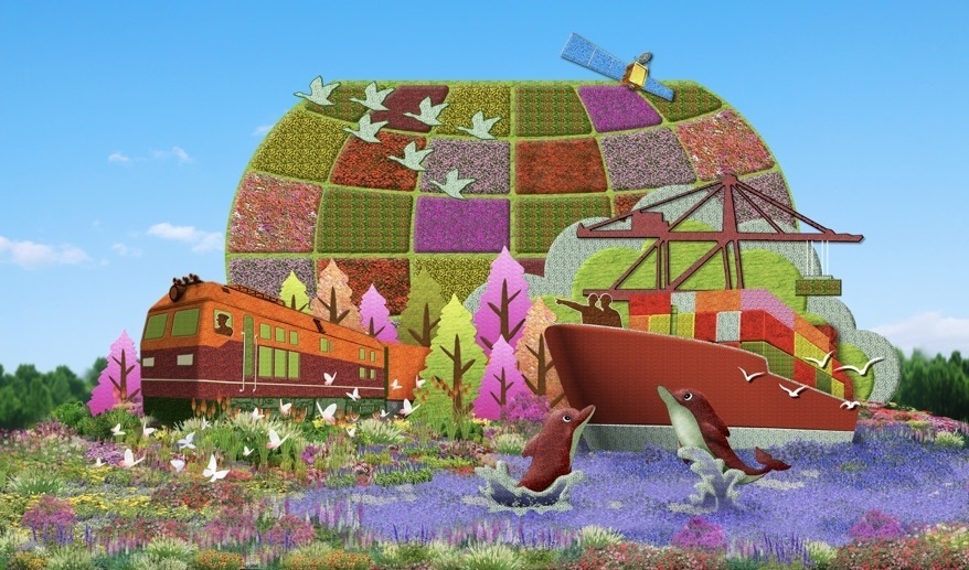 18米高花籃裝滿花卉和五谷