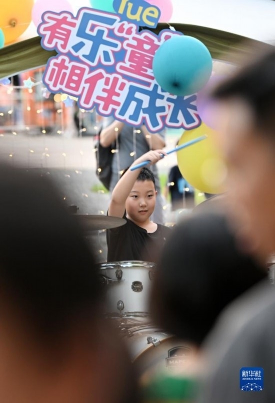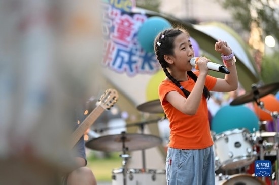 7月8日,小朋友在帳篷音樂會(huì)上表演節(jié)目。