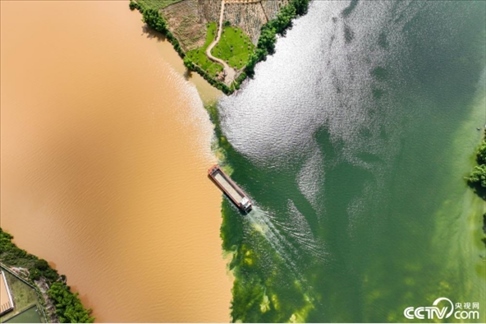 2023年7月4日,南寧三江口左右江交匯處黃綠分明,場面壯觀。每年進入汛期后,該交匯處常常出現(xiàn)“鴛鴦鍋”景觀。