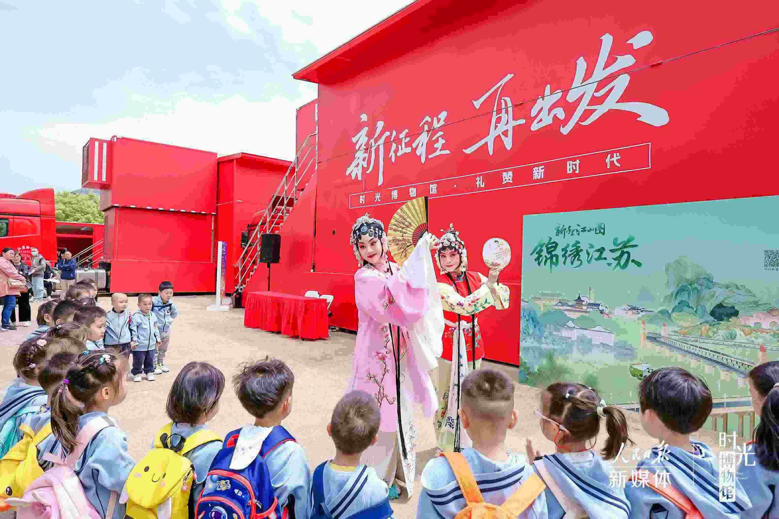 2023年“時(shí)光博物館”流動(dòng)展覽的首站選擇在各年齡層次人群相對(duì)集中的南京市玄武湖公園,結(jié)合江蘇特色進(jìn)行屬地化改造,精心策劃組織了多場(chǎng)非遺表演。昆曲、南京白局、絨花制作、金陵刻經(jīng)印刷技藝展示等,讓參觀者真切感知到日新月異的城市發(fā)展和豐富多彩的本地文化。