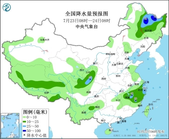 明天,內(nèi)蒙古及東北地區(qū)降雨范圍縮小、強(qiáng)度減弱,黑龍江、吉林西部及甘肅東部、四川北部、浙江、福建北部、江西北部、西藏中部等地有中到大雨,黑龍江中西部部分地區(qū)暴雨(50~70毫米)。