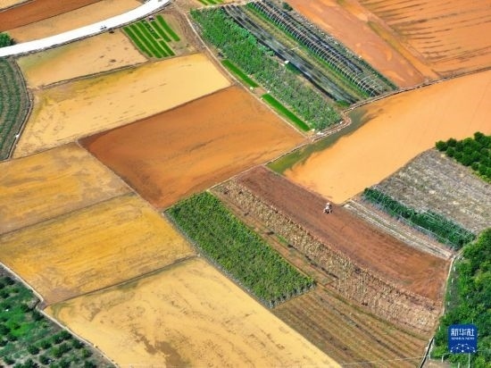 7月21日,農(nóng)民在南寧市青秀區(qū)長塘鎮(zhèn)耕田(無人機照片)。新華社記者 周華 攝