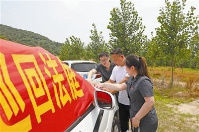 “現(xiàn)在開庭!”隨著審判長的一聲令下,這場以青山為背景、警車為審判臺、黃土地為審判場的“別樣”庭審正式落槌!近日,山東省莒南縣人民法院環(huán)境資源審判庭的法官冒著酷暑來到坊前鎮(zhèn)李家崖村,對被告人李某非法占用農(nóng)用地刑事附帶民事公益訴訟案件進行開庭宣判,并現(xiàn)場監(jiān)督被告人對破壞的土地進行徹底修復(fù)。