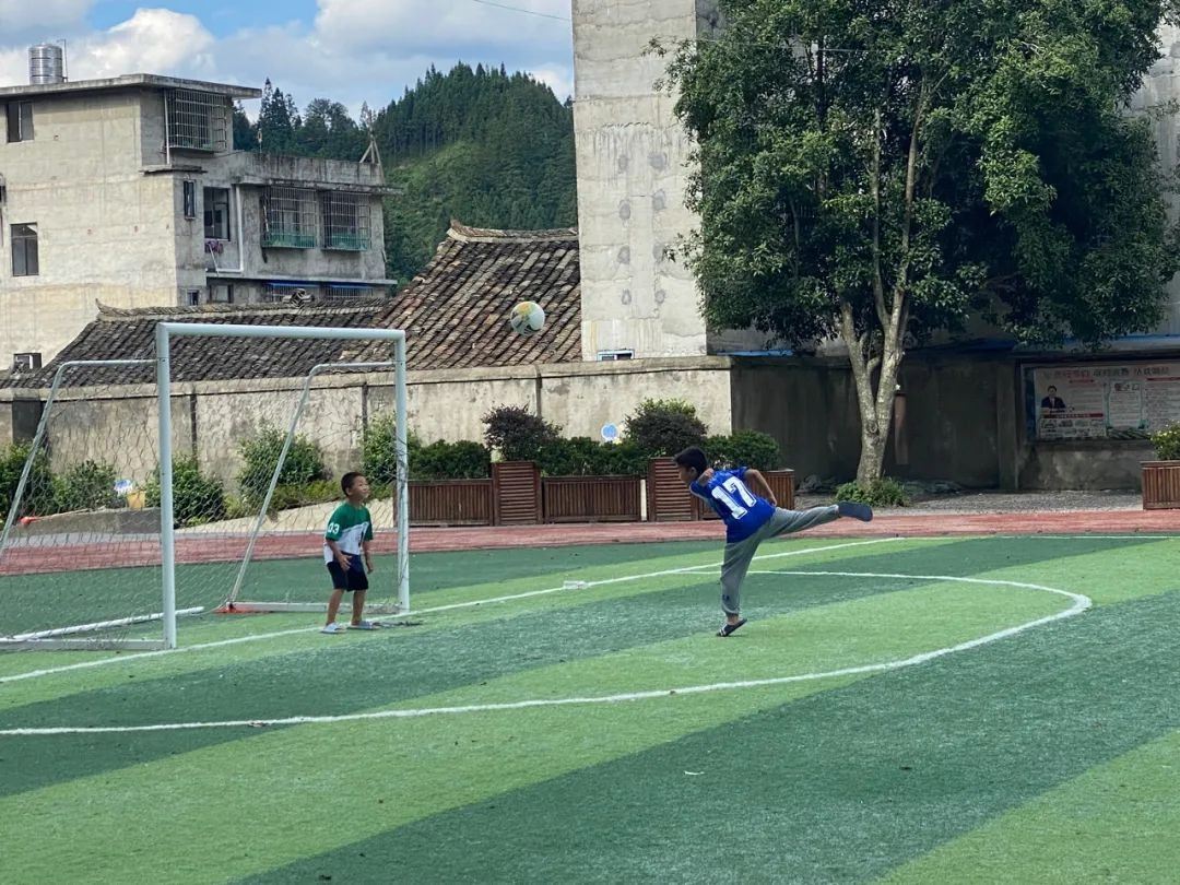 正值暑假,在榕江縣一所小學(xué)的足球場(chǎng)上,王同學(xué)和錢同學(xué)正在踢足球。今年七歲的王同學(xué)剛剛幼兒園畢業(yè),平時(shí)愛看足球,也愛踢足球,“長(zhǎng)大以后,我也要踢‘村超’!”今年十二歲的錢同學(xué)則是小學(xué)足球校隊(duì)的成員,也常??础按宄北荣悾跋M院竽艽硇j?duì)拿到一個(gè)冠軍?!?/p>