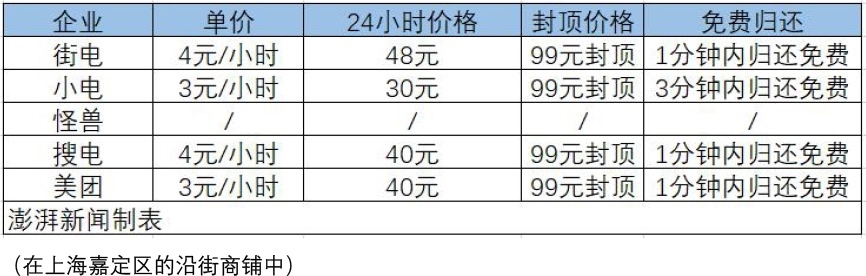 上海的共享充電寶如何收費(fèi)?澎湃新聞記者對各大品牌的共享充電寶價(jià)格做出統(tǒng)計(jì)。