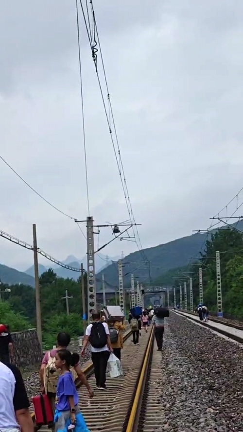 截至8月2日凌晨,K396次、K1178次乘客也陸續(xù)被安全轉運。從落坡嶺轉運K396次乘客時,武警一個帶一個,背著、扶著、抬著擔架,帶老人和孩子走過危險的斷橋和懸空的鐵軌。