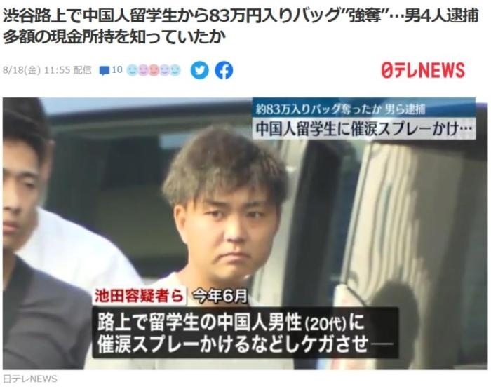 ·在東京搶劫中國留學(xué)生的嫌犯落網(wǎng),搶劫金額超4萬元。