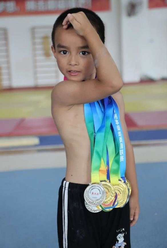 來自湖南湘潭的7歲體操小將蔣鴻暉,在今年省賽勇奪5金2銀。蔣鴻暉的父母均為殘障人士,他從4歲就開始體操訓(xùn)練生涯,夢想長大能拿奧運冠軍。