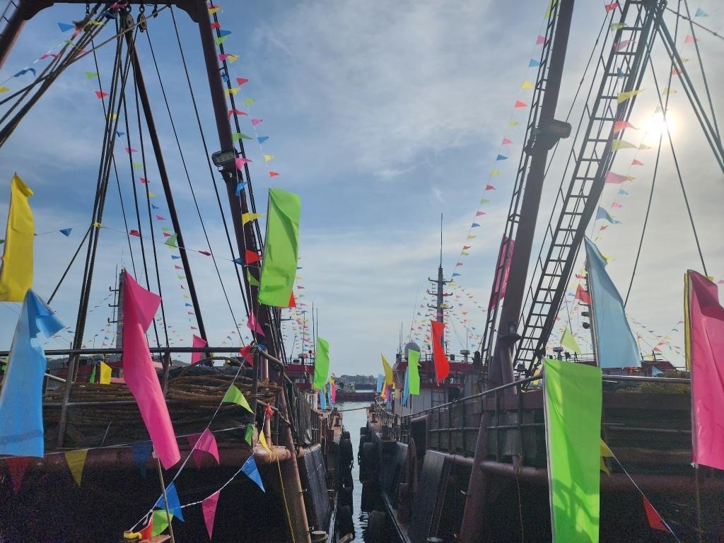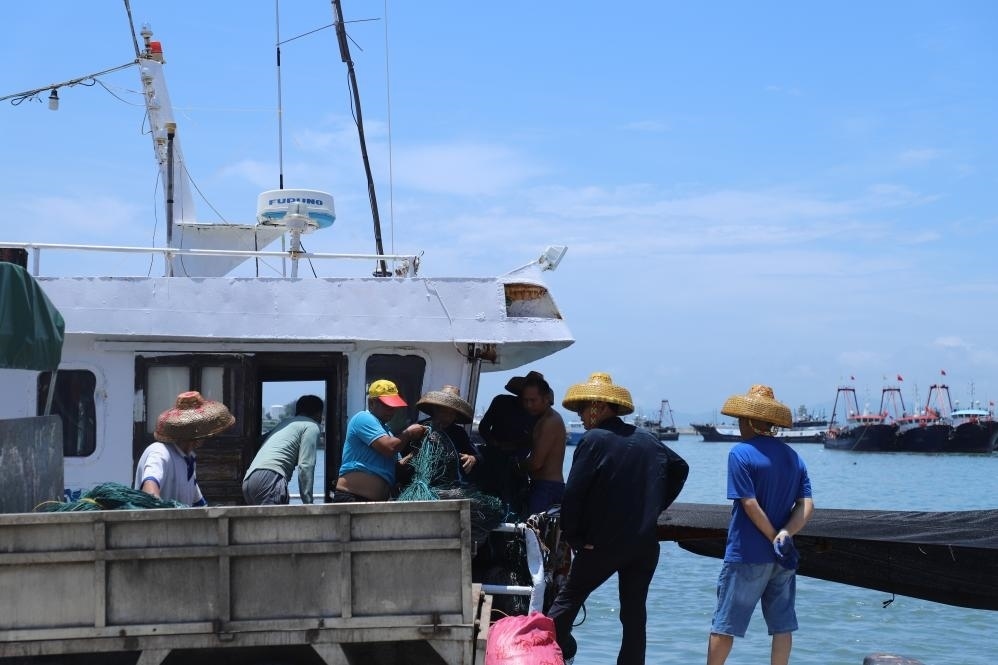 8月16日上午,溫潤的海風(fēng)輕拂海面,一排排漁船??吭陂l坡港海灣,汽笛聲陣陣起伏。休息了三個半月的漁民鄭建華坐在船頭,正翹首以盼正午時分開漁號角的吹響。