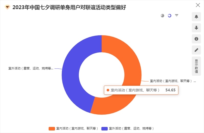 “單身經(jīng)濟與浪漫經(jīng)濟并不沖突?!睆堃愀嬖V記者,今年單身人士參加七夕節(jié)交友聯(lián)誼活動意愿強烈,“有53.77%的表示會參加。在聯(lián)誼活動的選擇上,54.65%的人會選擇劇本殺、密室逃脫、桌游等室內活動。”