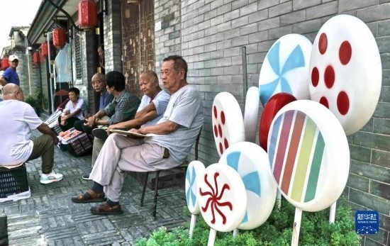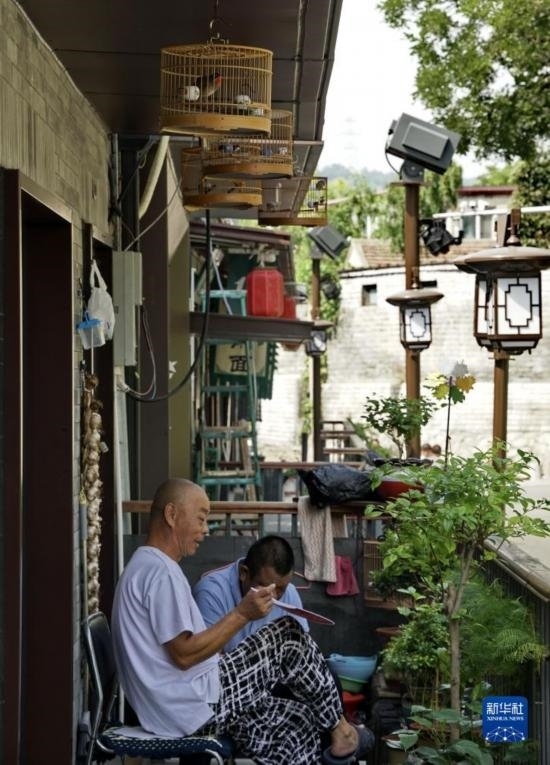 9月1日,模式口街區(qū)的居民在家門口休閑。